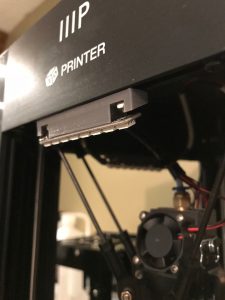 The bracket screws to the extruded channel on the 3D printer with a modified M3 button head screw. On the underside of the top extruded channel (on all 3 sides) there is a pocket, perfect for a screw head. I took a cutting wheel on a Dremel tool and cut the screw head into a bar shape. The M3 Screw fits up into to the channel, rotates, and “locks” whenever the nut on the bottom is tightened. I used this approach because it does not modify the printer chassis at all, while producing a very solid mounting bracket. After mounting the 3D printed bracket, I used a small, coarse-threaded plastic screw to attach the LED light bar to the bracket.